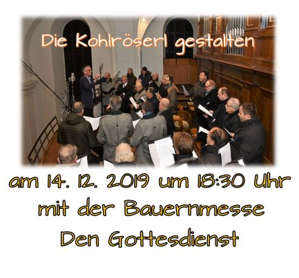 Sonntag, 8. Dezember 2019, Maria Empfängnis, 9.45 Uhr, Pfarrkirche, Paul Mittmann: Missa in G, Op. 140, Giulio Caccini: Ave Maria, Einlagen von Weirich, Ebenseer Krippen- und Hirtenlieder